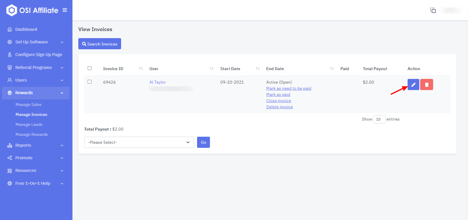 Step 3. Another option to change the Invoice Status is getting to the invoice by clicking the "Edit" icon