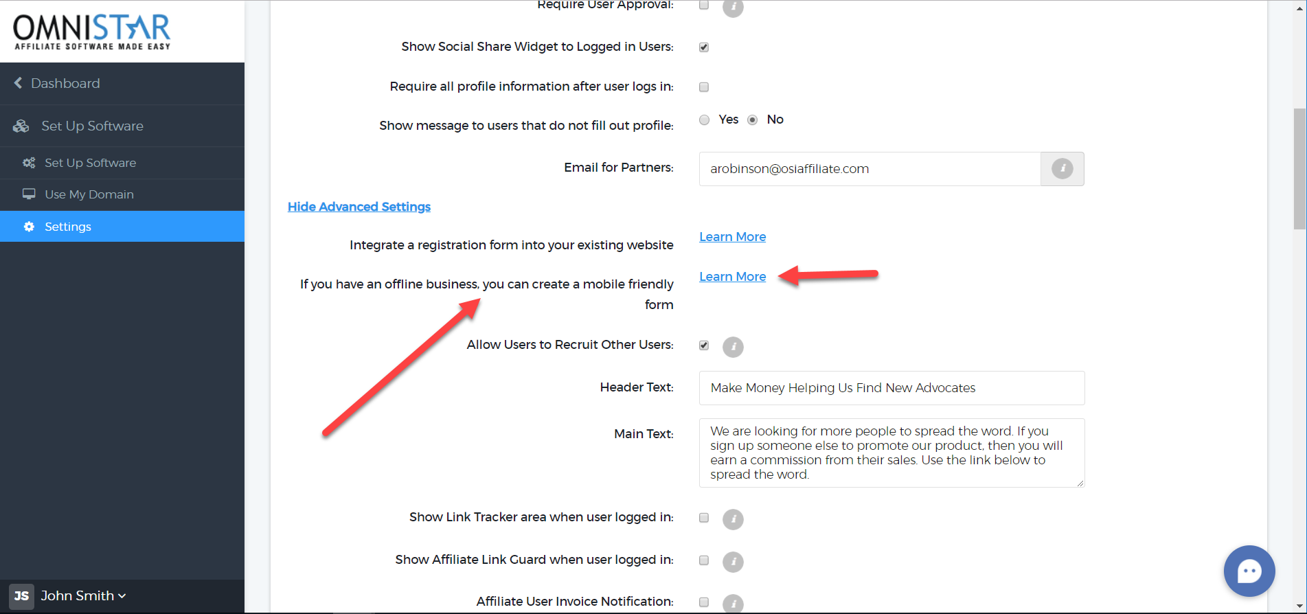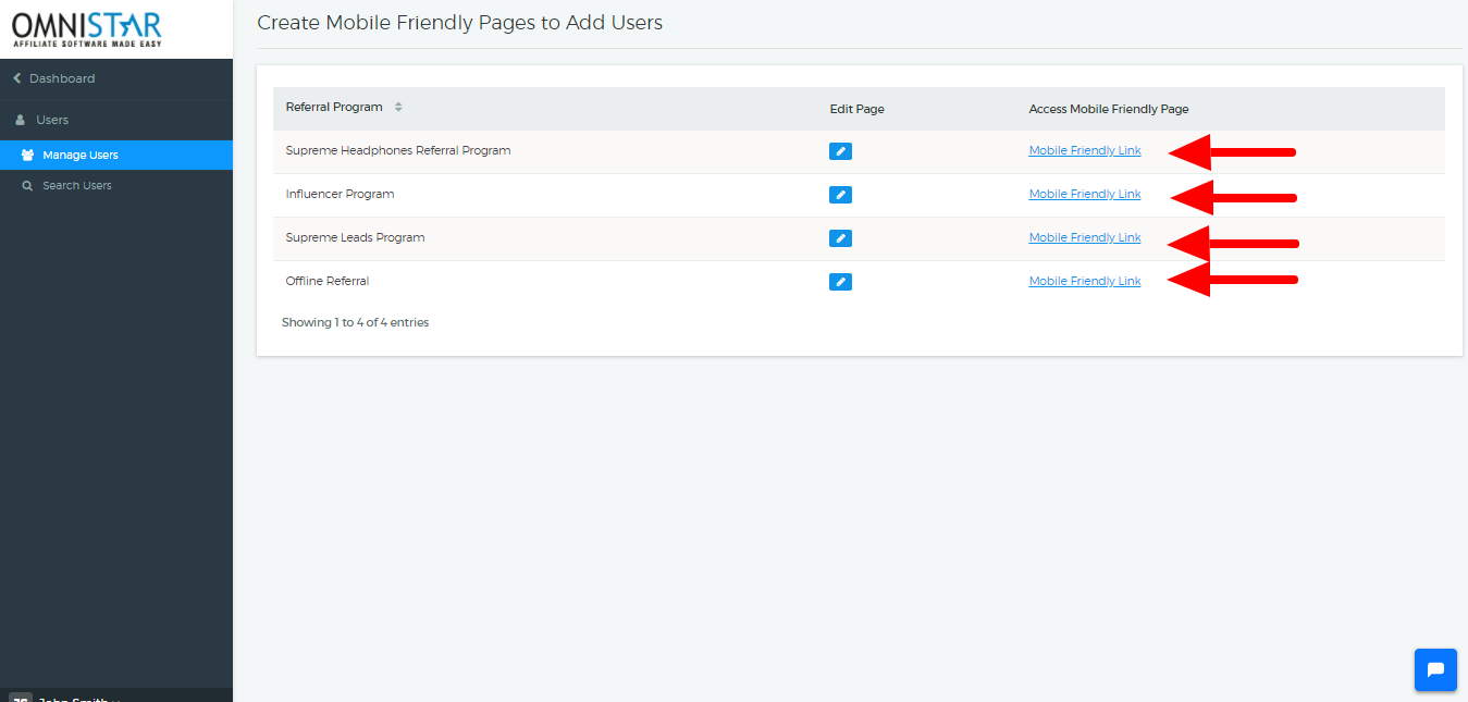 11. In the following page, click the link saying "Mobile Friendly Link" across the specific Referral Program.