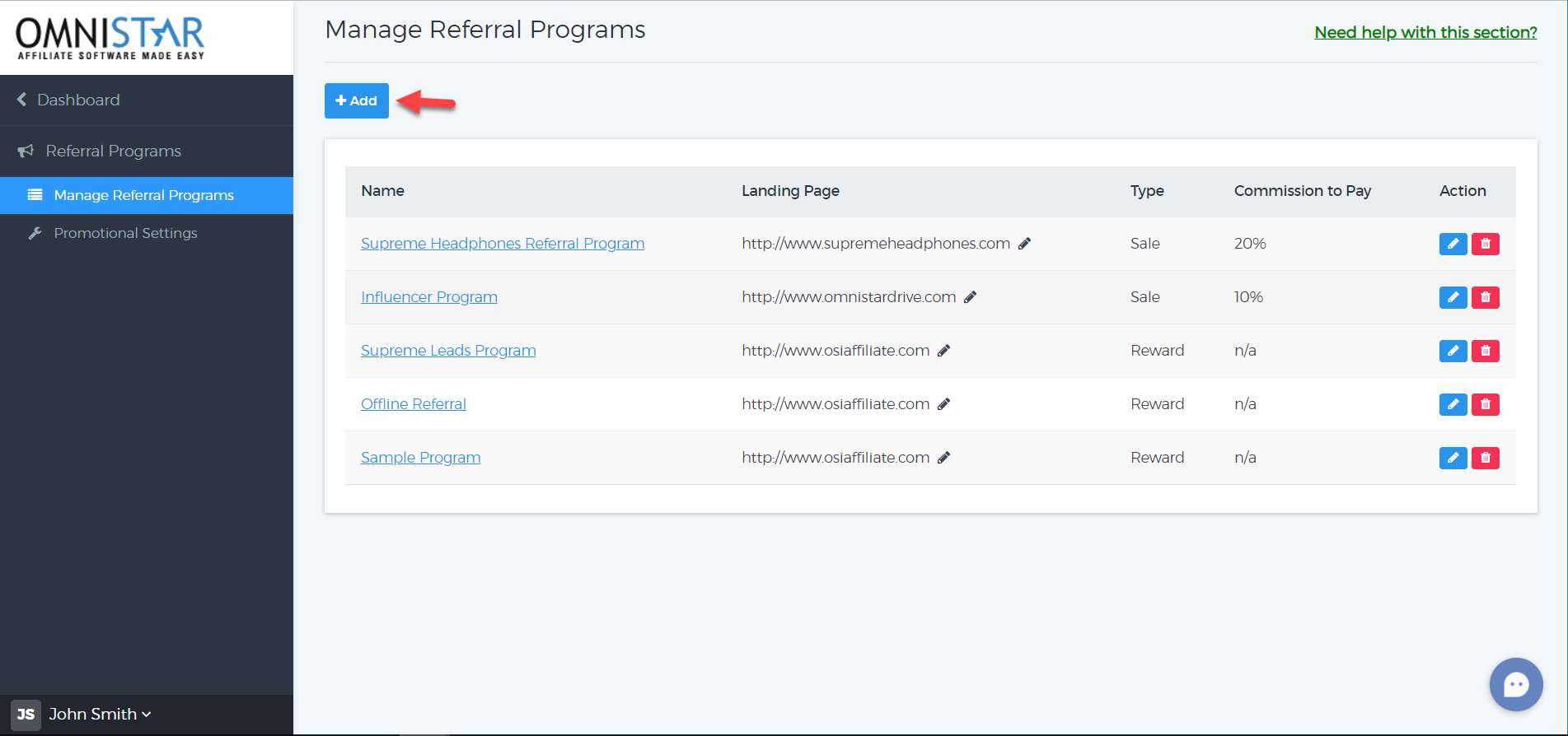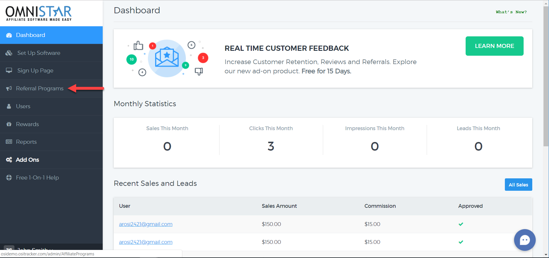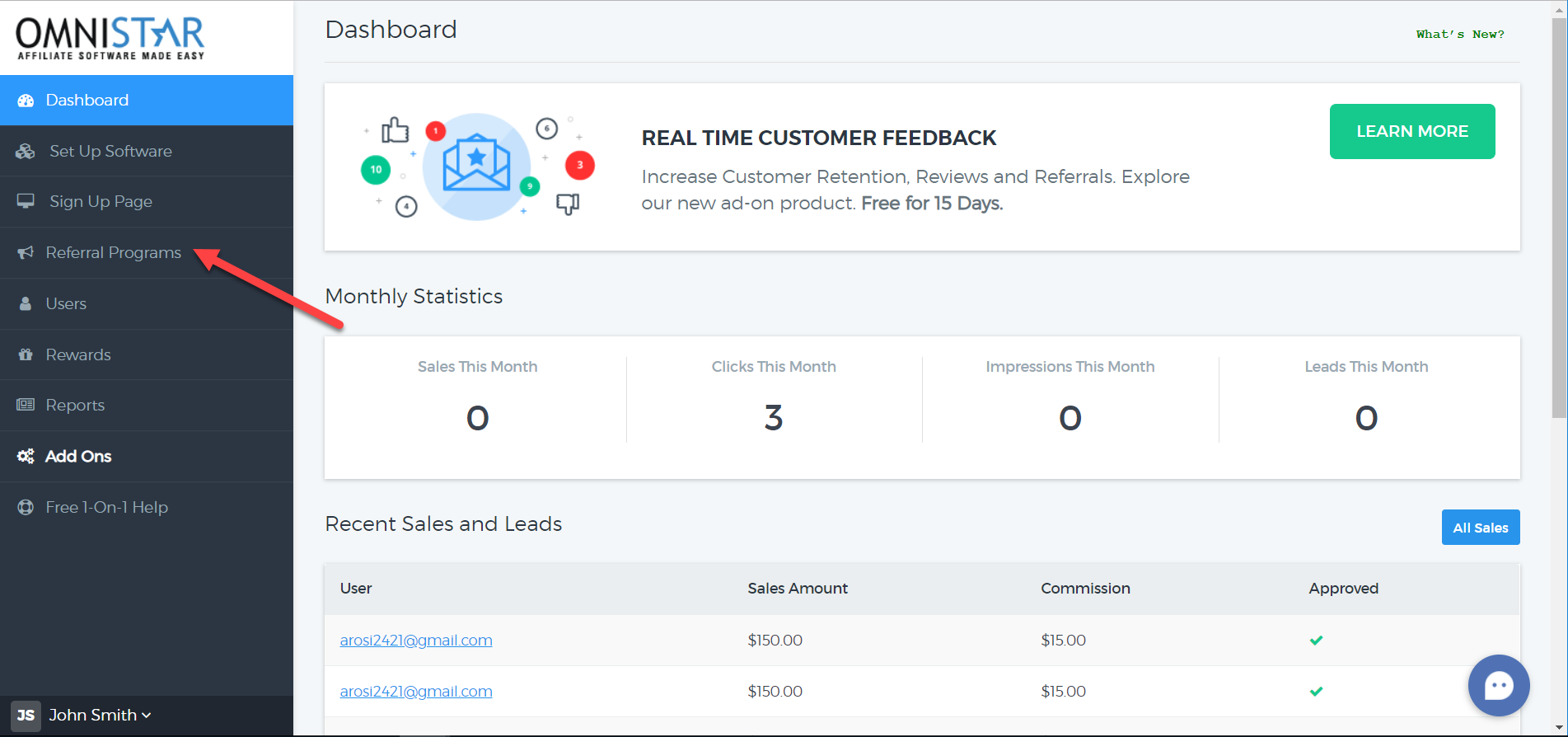1. From the Admin Dashboard, click on "Referral Programs".