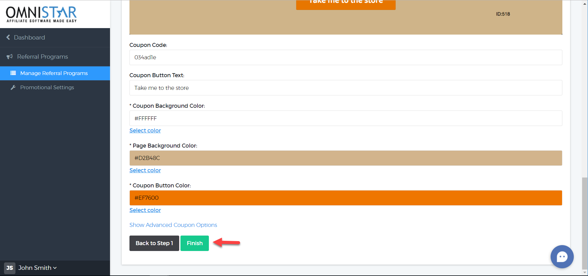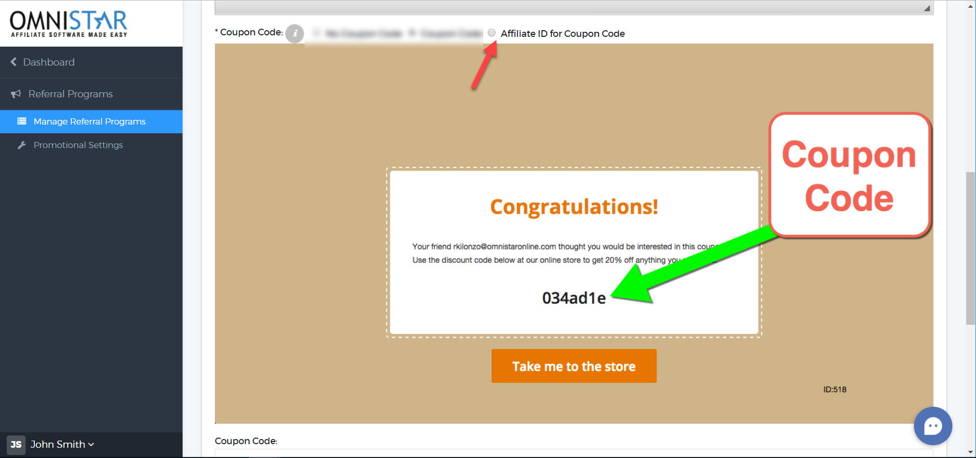 5. After filling the details, under the Coupon Code option, select "Affiliate ID for Coupon Code".