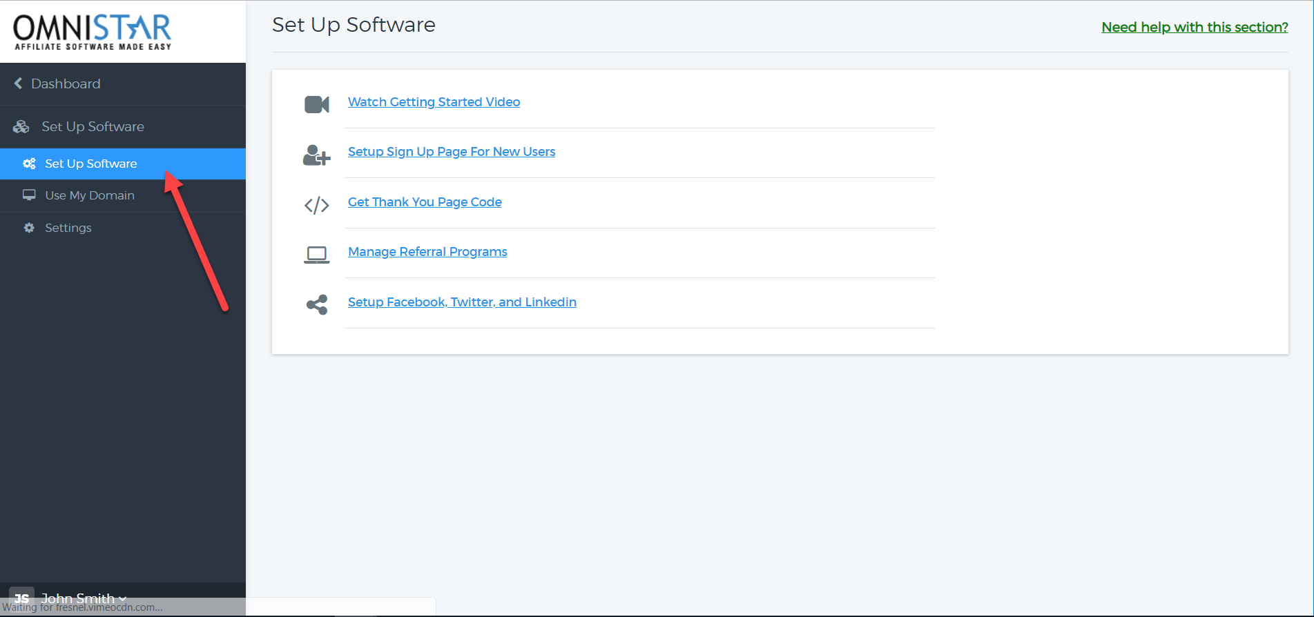 8. Go back to the dashboard and click on Set Up Software.