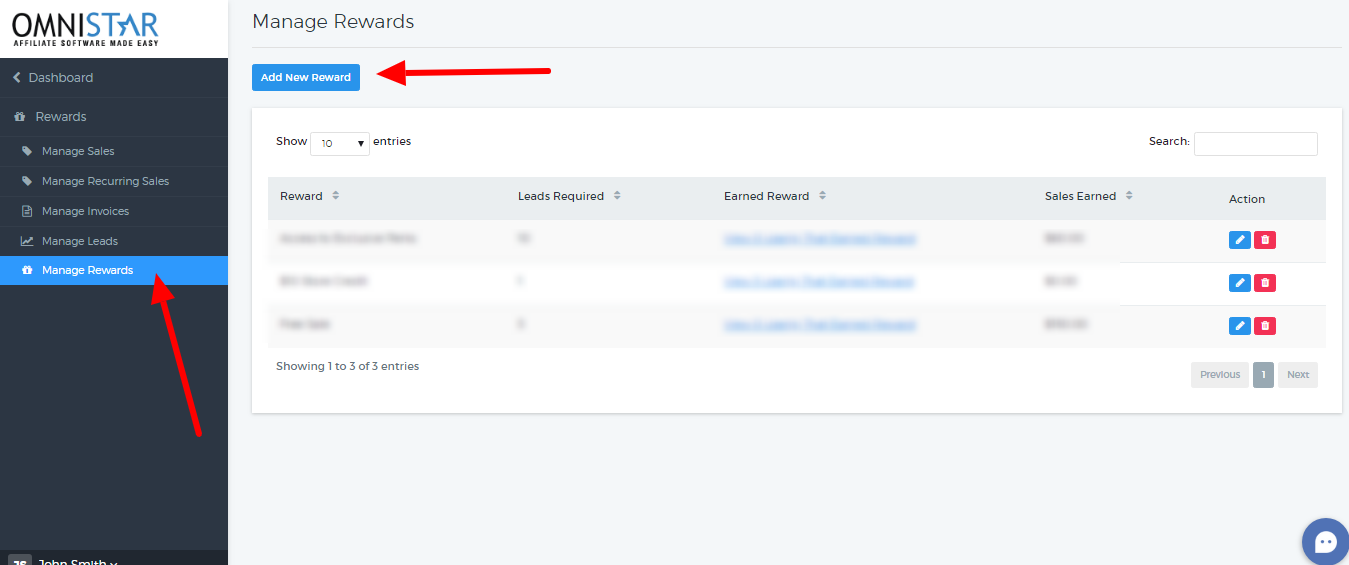 6. On the "Manage Rewards" page, click the "Add New Reward" button at the top which will take you to the page shown below. On this page fill in all the fields shown. Include the Reward name, the number of leads required, the description and a reward image.